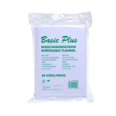 Basic Plus - Waschhandschuhe - leicht, fusselfrei, weiß - 50 Stück