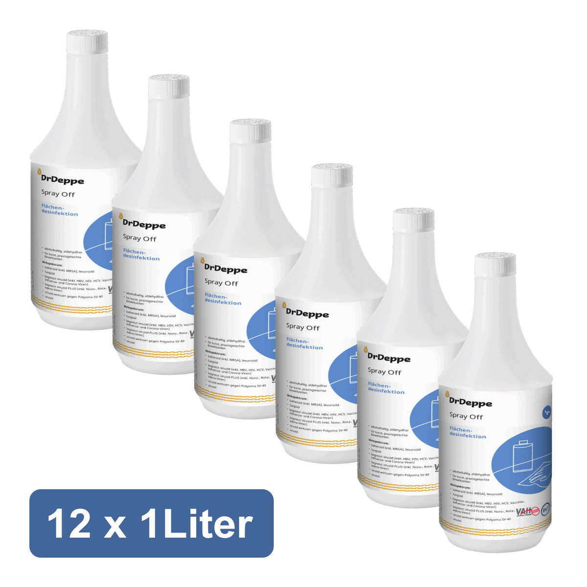 Spray Off ist ein gebrauchsfertiges, alkoholisches Desinfektionsmittel, das speziell für Bereiche mit maximalem Infektionsrisiko entwickelt wurde. Mit einer Wirkstoffbasis von über 63 g Ethanol bietet es ein voll viruzides Wirkspektrum und eliminiert zuverlässig alle behüllten und unbehüllten Viren. Trotz der starken Performance überzeugt das Produkt durch kurze, praxisgerechte Einwirkzeiten und eine aldehydfreie Rezeptur – ideal für den Einsatz in Kliniken, Praxen und der Industrie.