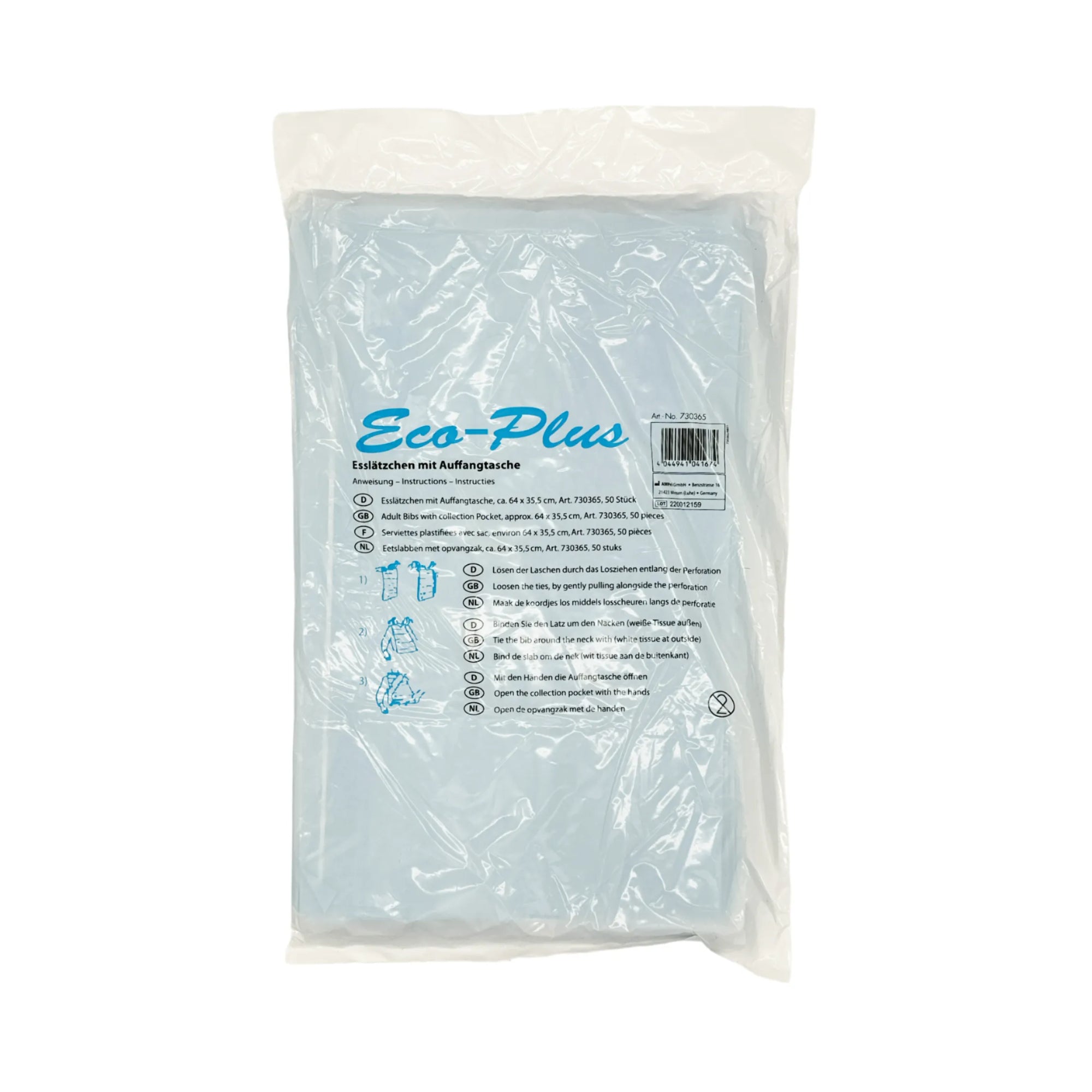 Eco-Plus - Esslätzchen mit Auffangtasche - 64 x 35,5cm - 50 Stück