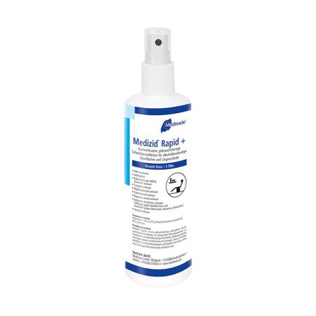 Medizid® Rapid+ ist eine gebrauchsfertige, alkoholische Lösung zur schnellen Desinfektion von alkoholbeständigen Oberflächen und Gegenständen. Das Präparat überzeugt durch sein umfassendes Wirkspektrum und extrem kurze Einwirkzeiten, was es zum idealen Partner im patientennahen Umfeld, in Kliniken, Praxen und Pflegebereichen macht.