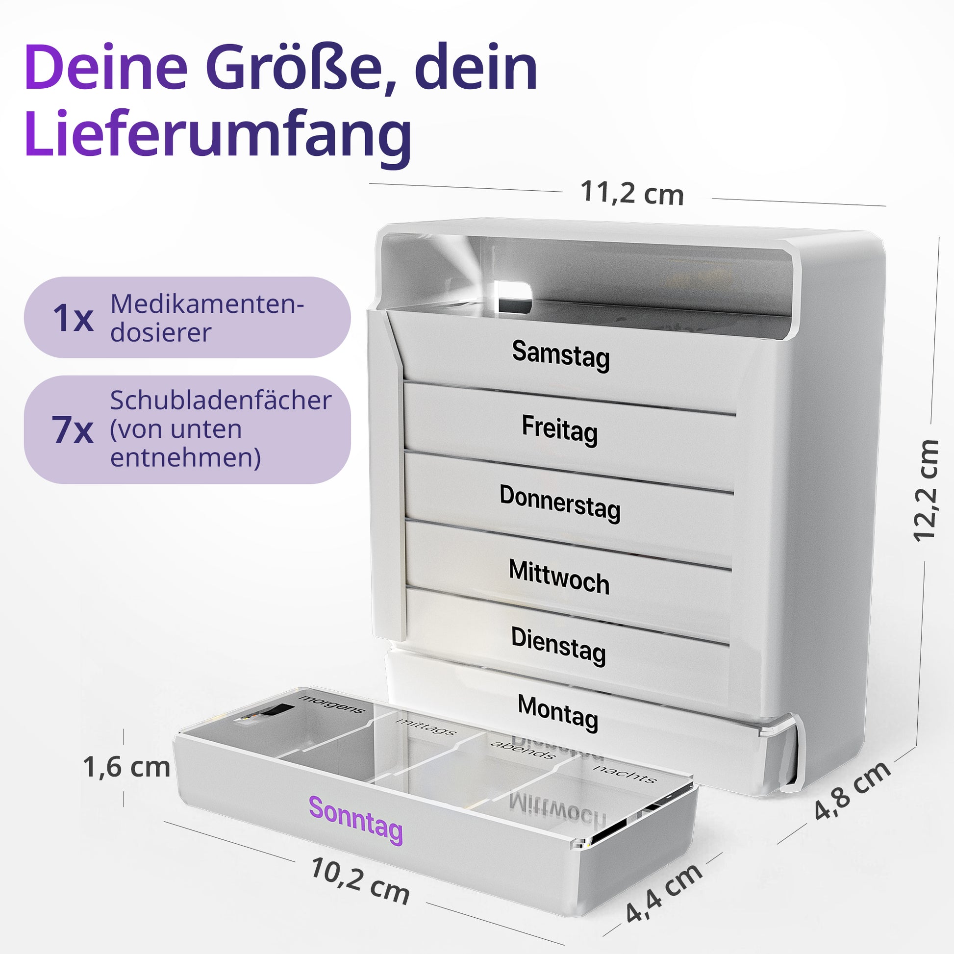 Senomed - Tablettenbox mit 4 Fächern pro Tag – Wochendosierer