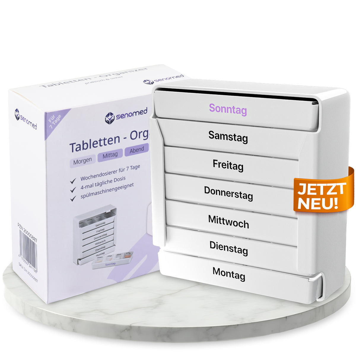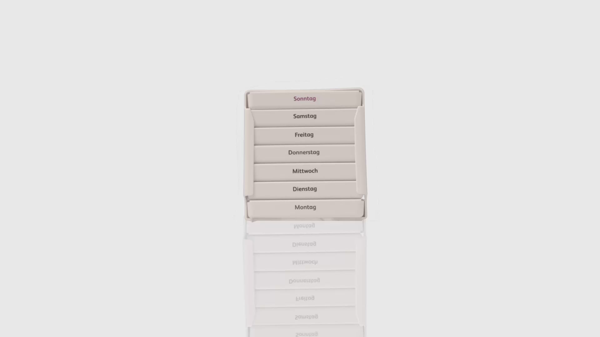 Die gut lesbaren Wochentags-Beschriftungen sorgen für eine verlässliche Routine ohne Verwechslungen.