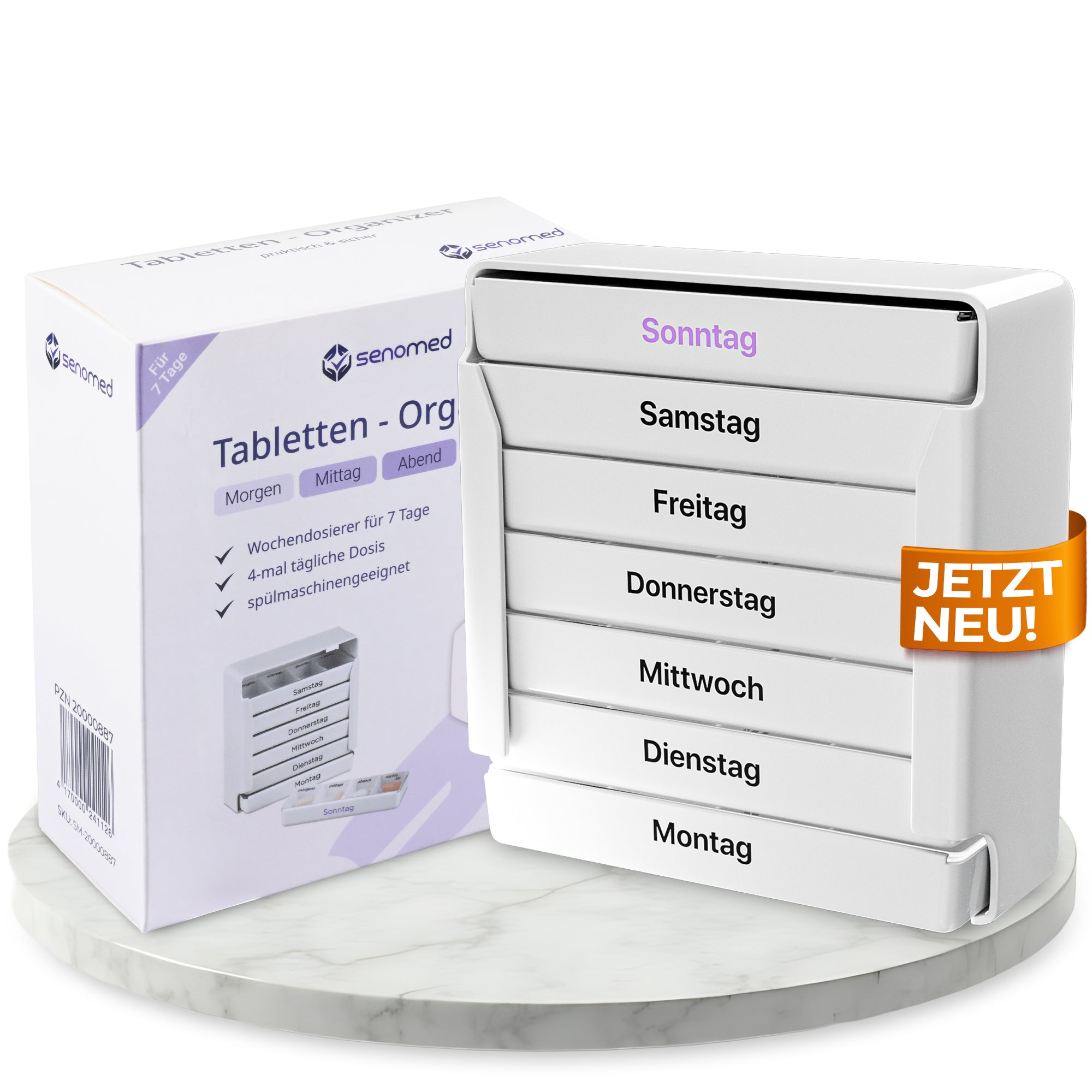Senomed - Tablettenbox mit 4 Fächern pro Tag – Wochendosierer