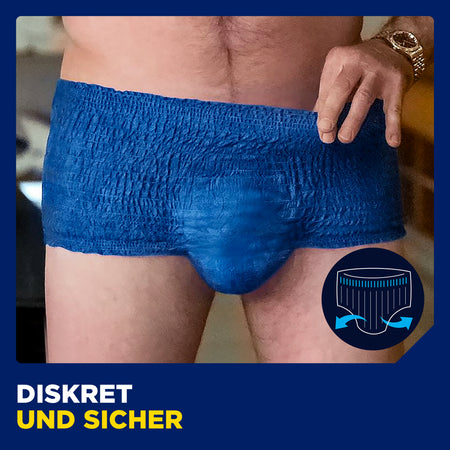 Die TENA MEN Active Fit Pants Plus in stilvollem Marineblau bieten Männern mit mittlerer bis starker Blasenschwäche eine zuverlässige und diskrete Lösung für den Alltag. Entwickelt mit Fokus auf Komfort, Sicherheit und Maskulinität, ermöglichen diese Einweghosen ein aktives Leben ohne Einschränkungen.