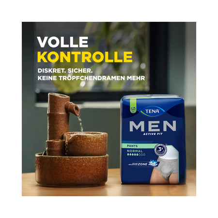 Für Männer, die trotz mittelstarker Blasenschwäche aktiv und selbstbewusst bleiben möchten, bieten die TENA Men Active Fit Pants Normal die ideale Lösung. Sie kombinieren Funktionalität mit Komfort und Diskretion, sodass Sie sich in jeder Situation sicher fühlen können.